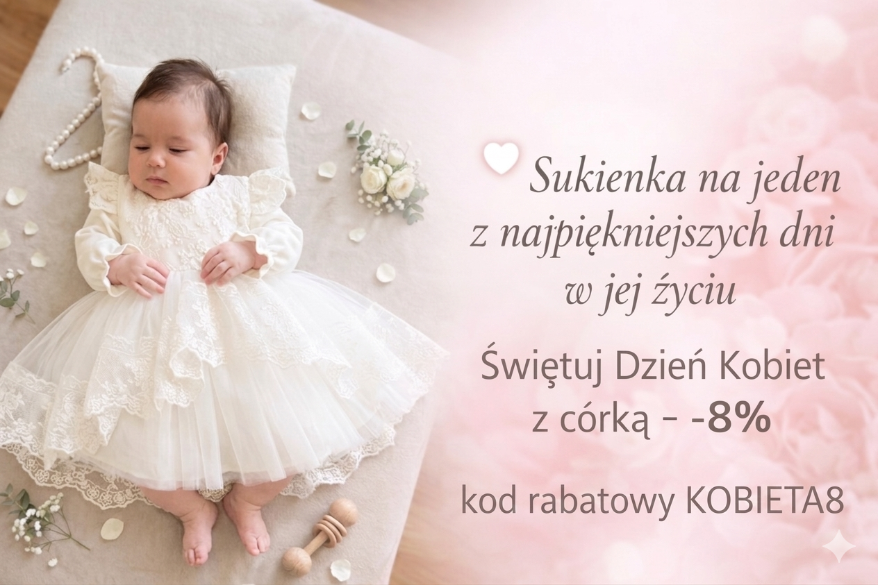 W naszej ofercie znajdują się również płaszczyki do chrztu, tiulowe spódniczki, sukienki urodzinowe oraz subtelne dodatki, które dopełniają stylizację.