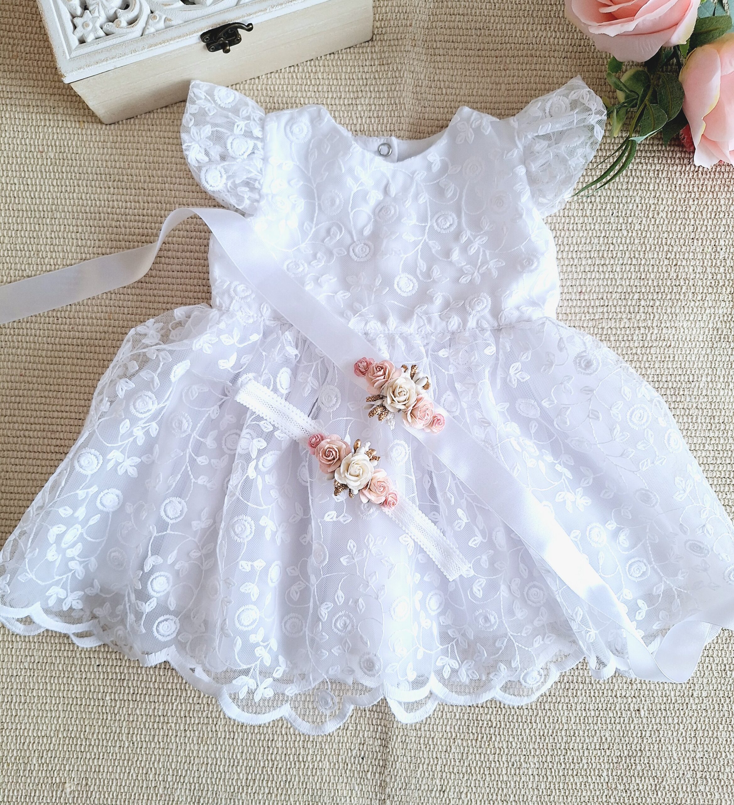 Nowość! Limitowana edycja koronkowej sukienki BIANCA w zestawie z paskiem I opaską jak na zdjęciu.