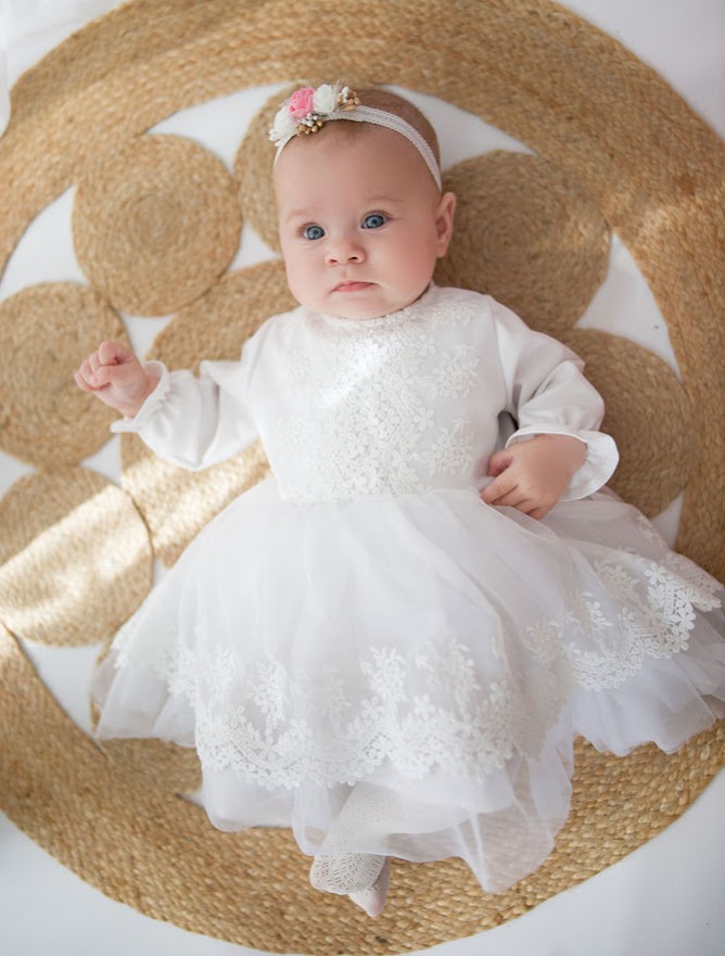Biała sukienka do chrztu dla dziewczynki MILENA.