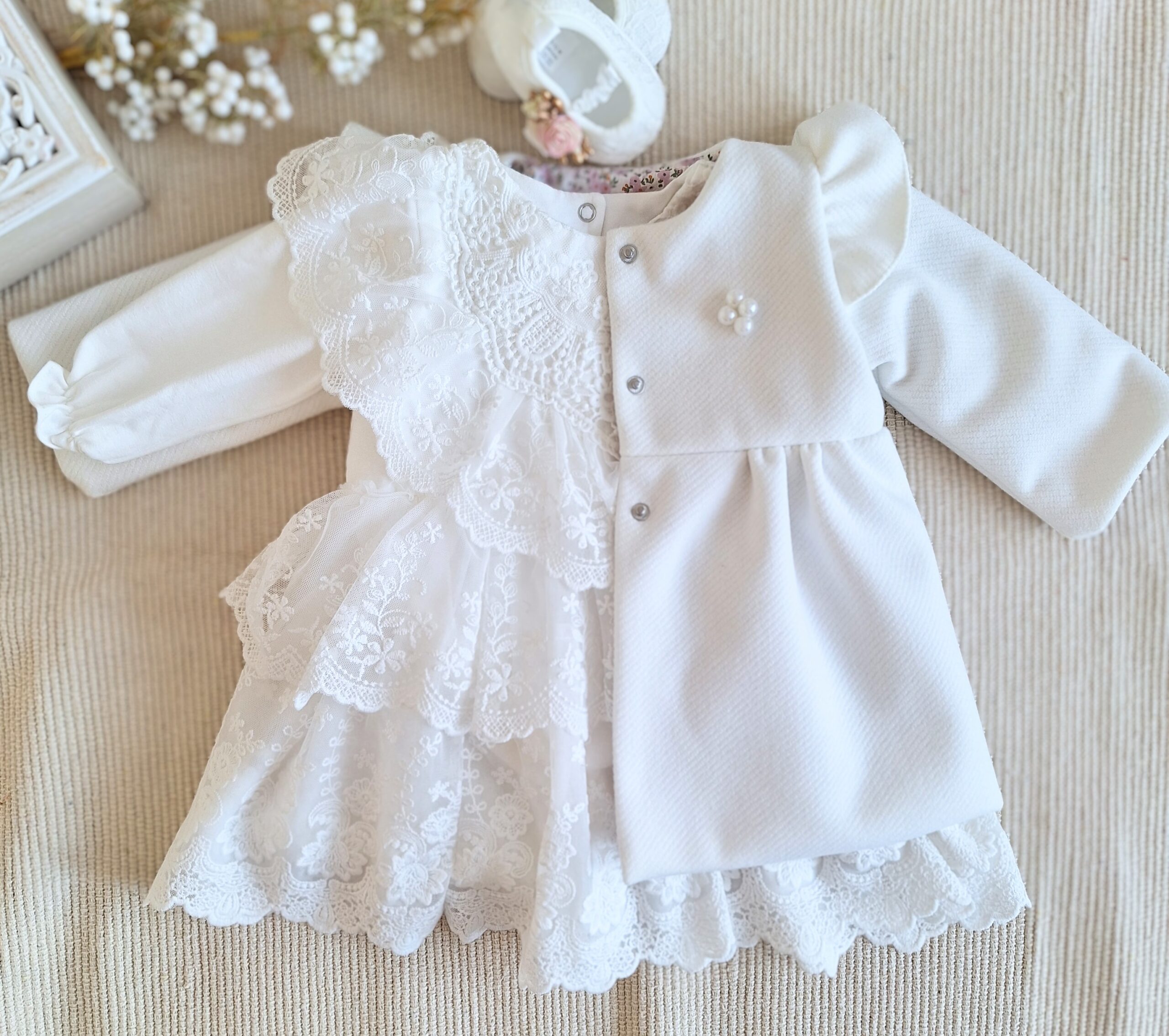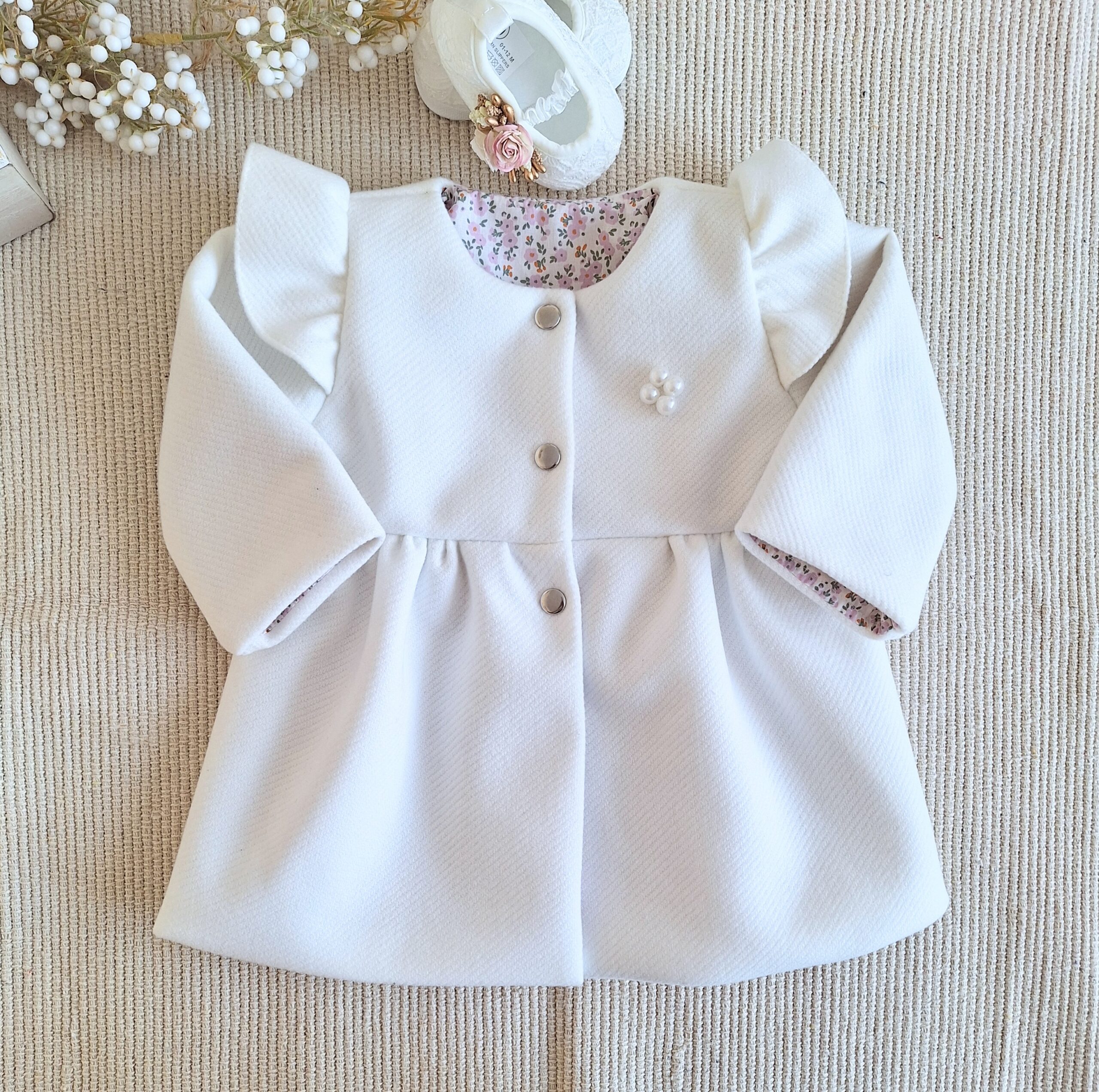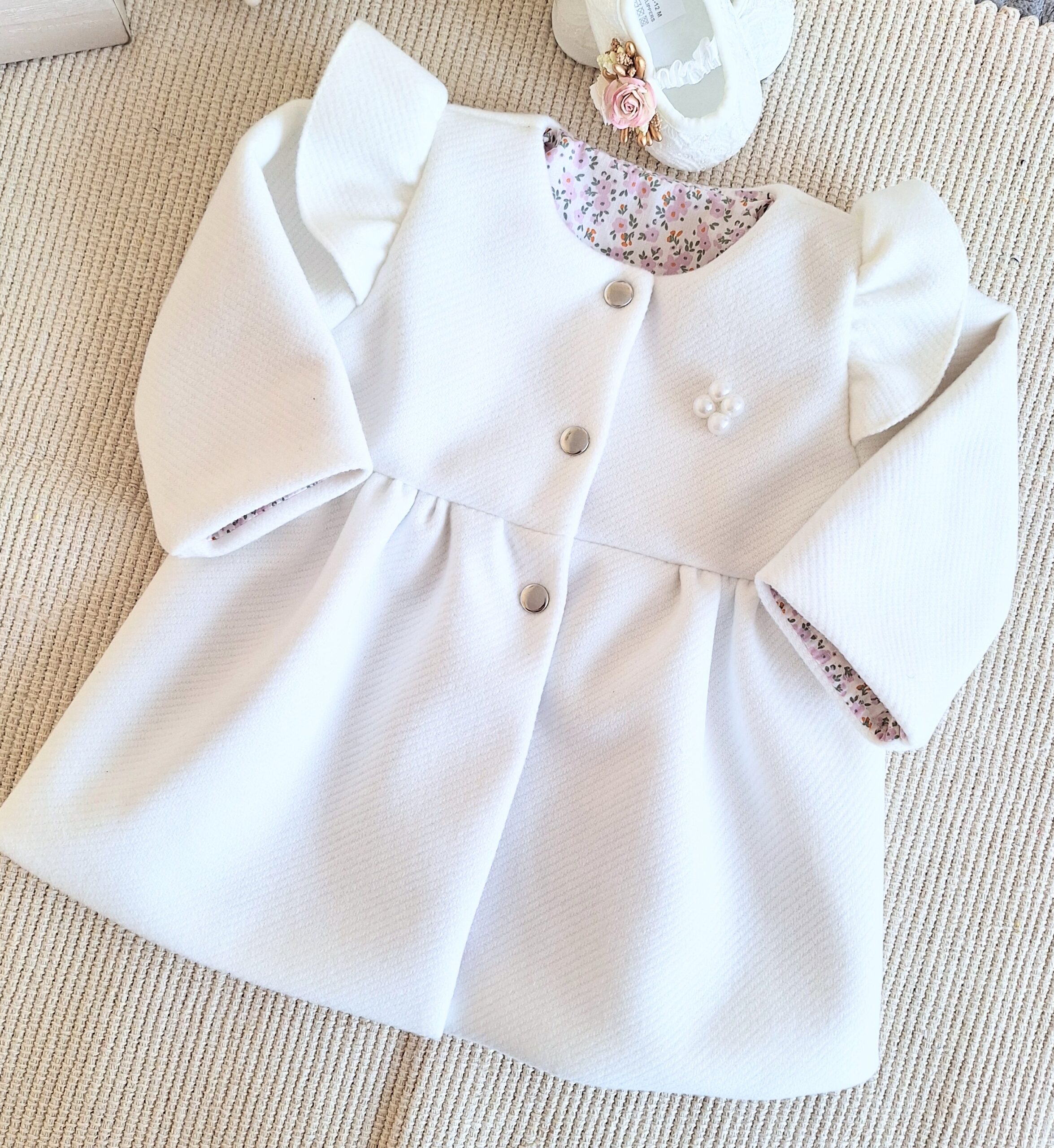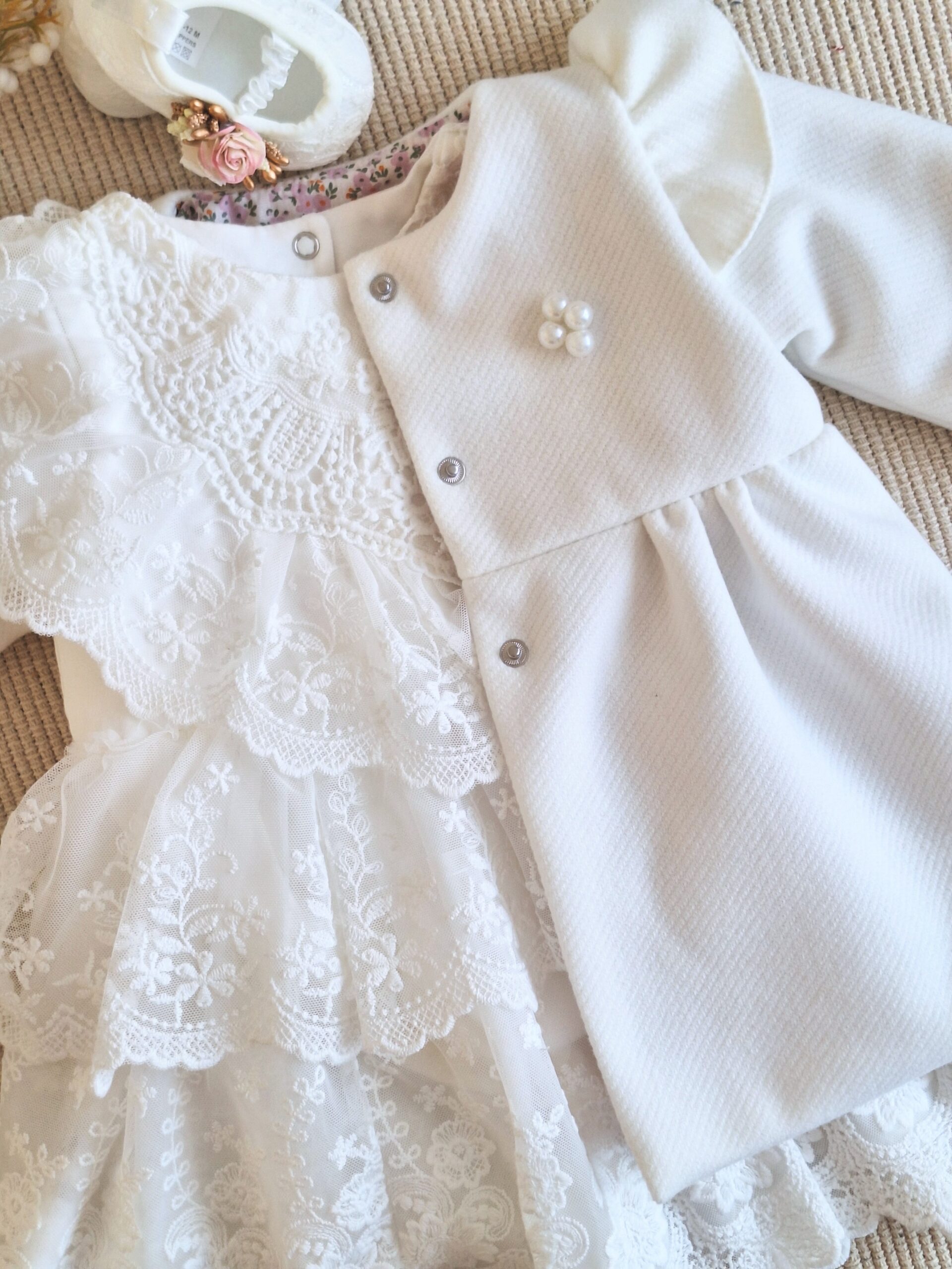 Płaszczyk do chrztu zapinany jest na 3 nierdzewne zatrzaski.