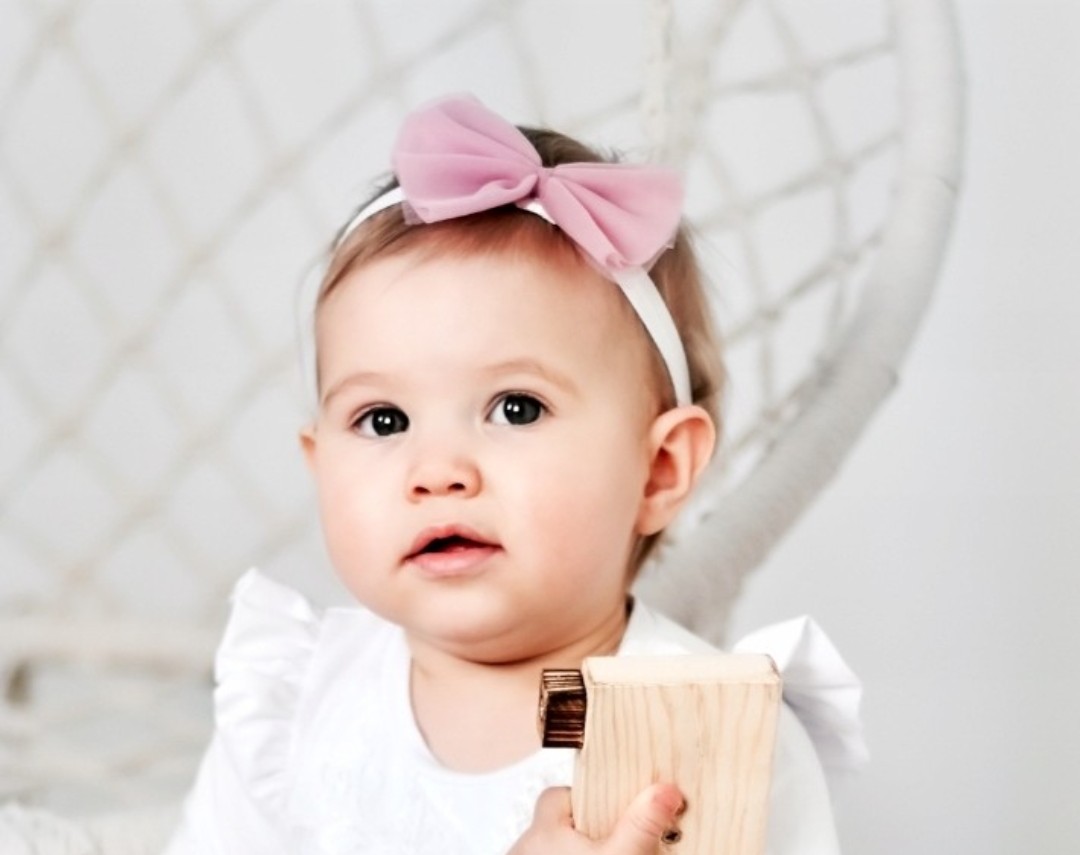 Opaska z tiulową kokardką w kolorze wrzosowego różu. Pasuje kolorystycznie do tiulowej spódniczki w tym samym odcieniu oraz do sukienki Bella.