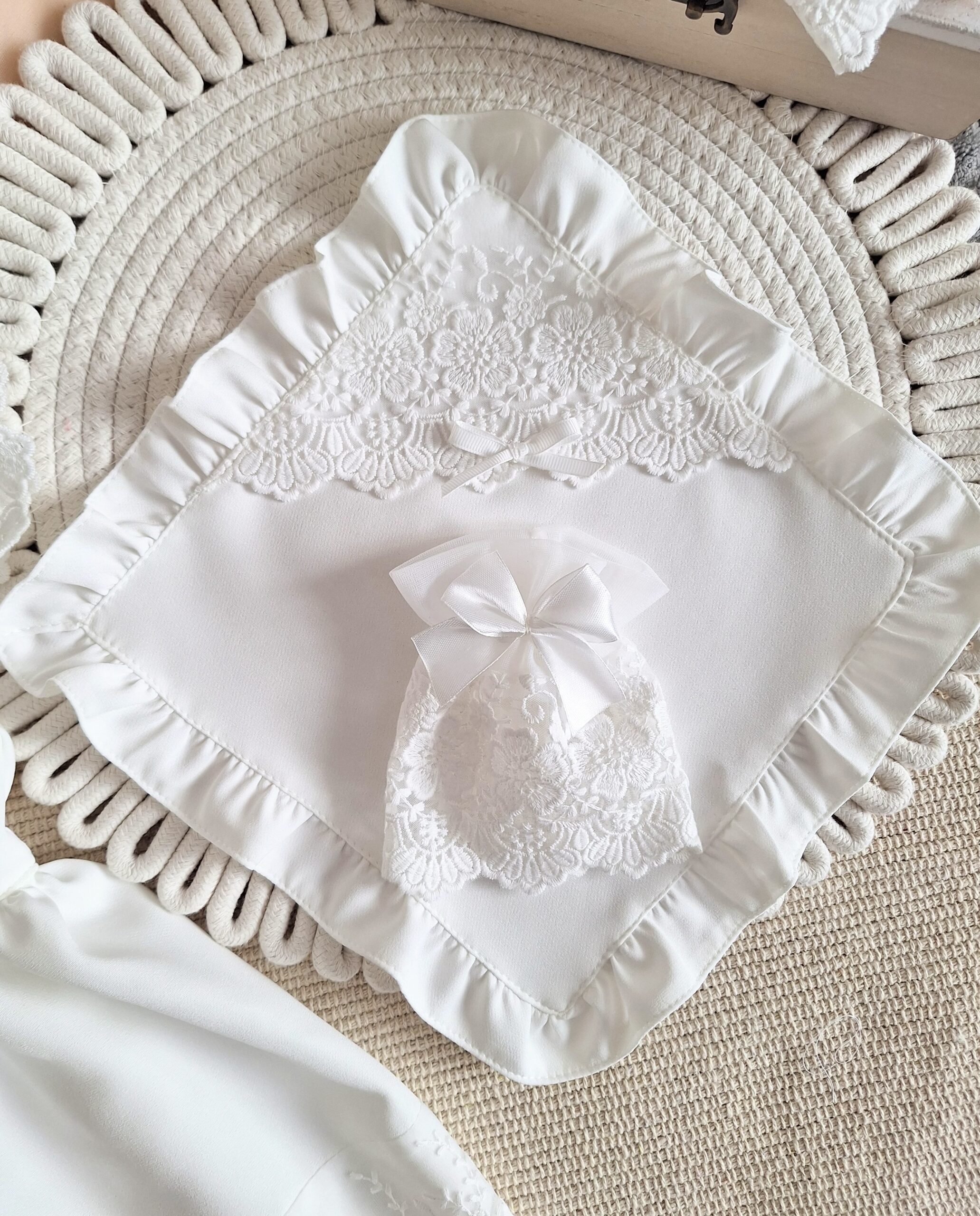 Szatka z ozdobą na świecę- profitką w kolorze ecru pasująca do sukienek Ofelia I Noemi.