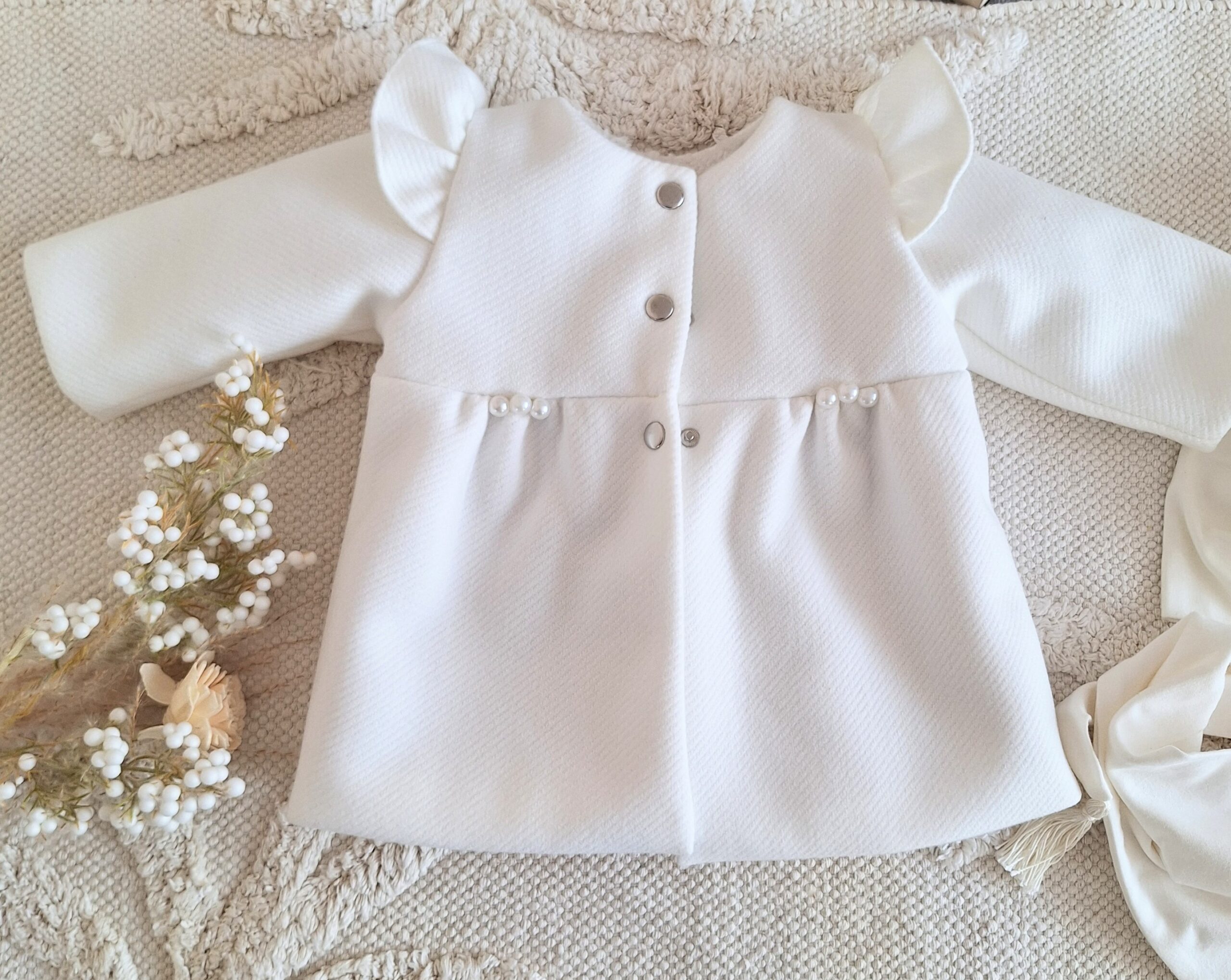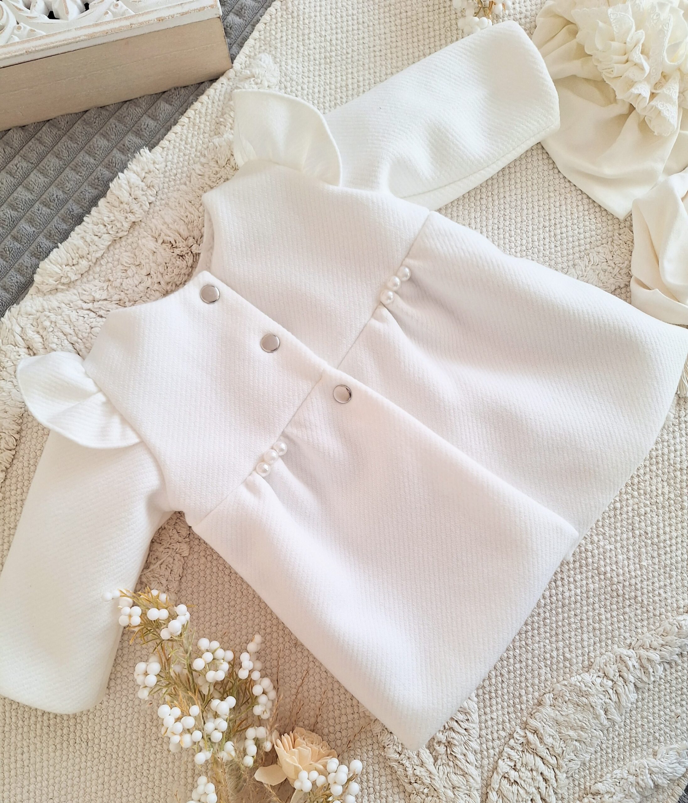 Płaszczyk do chrztu zapinany jest na 3 nierdzewne zatrzaski.